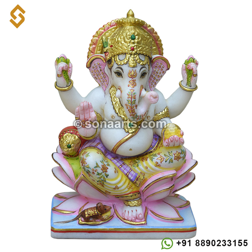 Beautiful Lord Ganesha Statue in makrana marble with color painting work. This Ganesh statue a perfect example of our mastery in marble statues.