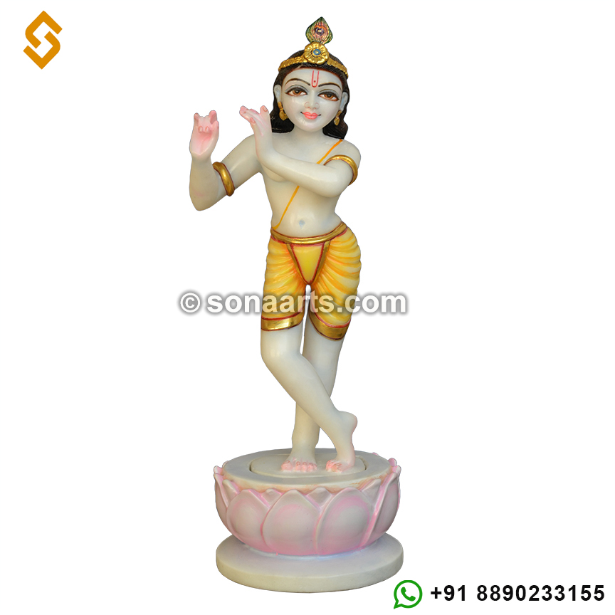 Handmade Iskcon Krishna Statue from White Marble. Made using high quality marble, this statue tuewhen finished and polished reflects an unparalleled shine.