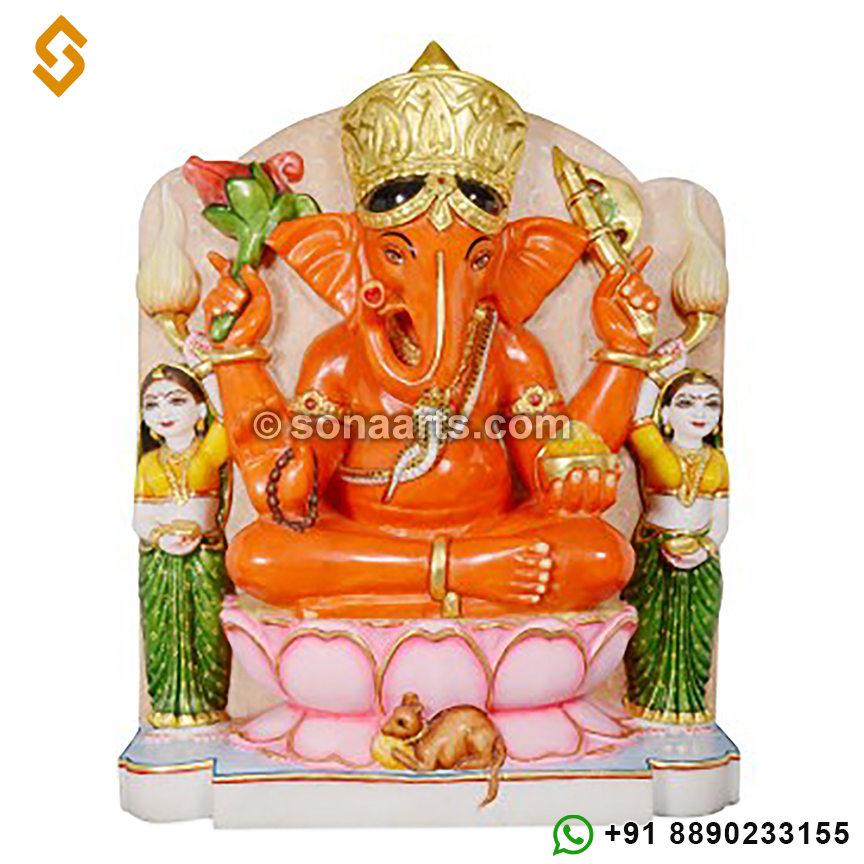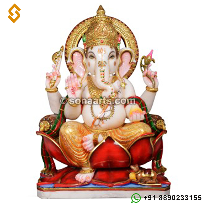 This Marble Ganesh ji Statue from high quality Makrana marble Stone (the best quality marble of India)  and are painted in attractive designs with wear a beautiful turban.