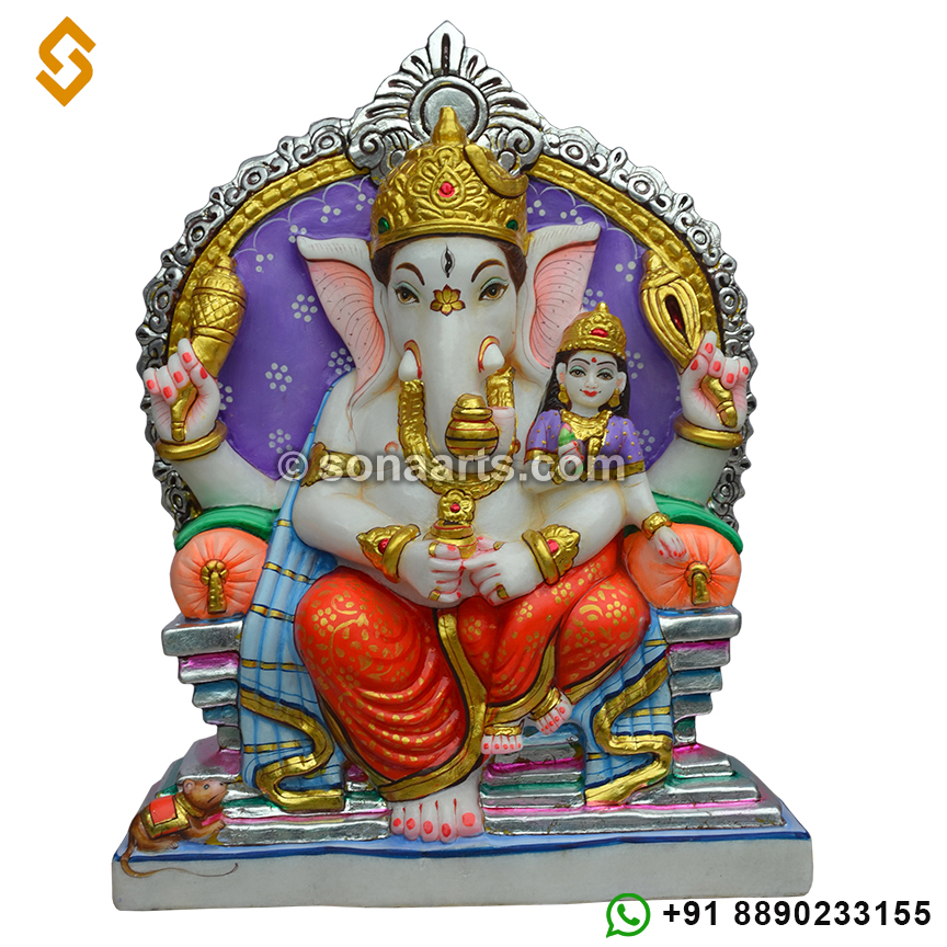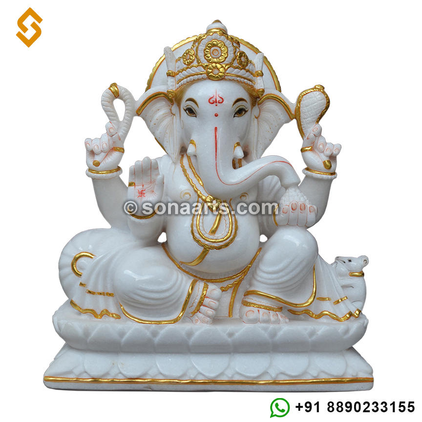 Marble Ganesh Statue For Temple foil and fine quality color painting work to give brilliance look. These ganesh statue carved out from pure Makrana marble (the best quality marble of India) are the distinguished artifact for your interiors.