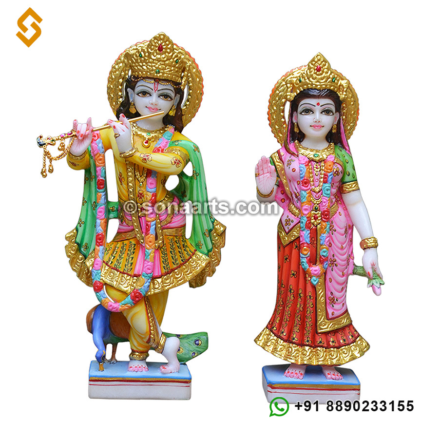 Marble Idols of Radha Krishna. Made using high quality marble, this statue tuewhen finished and polished reflects an unparalleled shine.