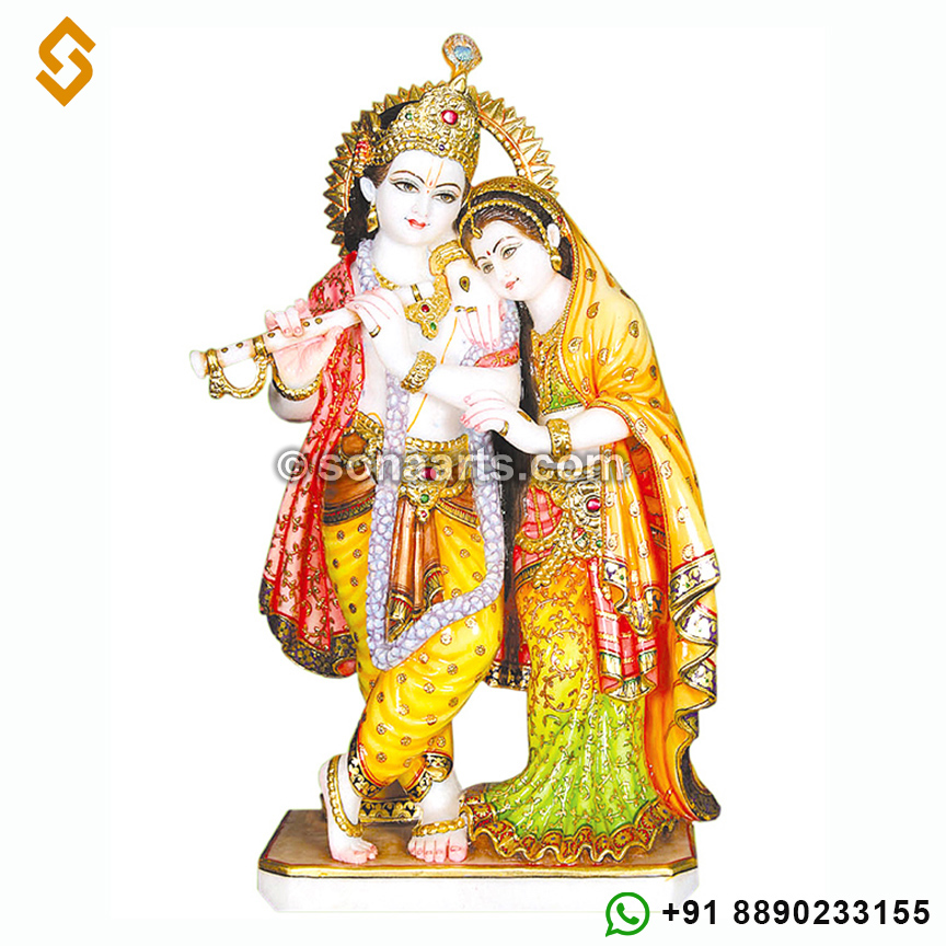 The marble Beautiful Lord Radha Krishna statue offered by us comes in scintillating colors. Made using high quality marble, this statue when finished and polished reflects an unparalleled shine. This marble made Radha Krishna statue is painted with attractive colors thus enhancing every feature of the idol.