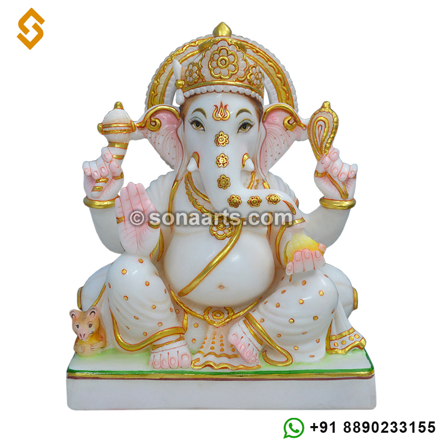 Lord Marble Ganesh Ji Murti foil and fine quality color painting work to give brilliance look. These ganesh statue carved out from pure Makrana marble (the best quality marble of India) are the distinguished artifact for your interiors.