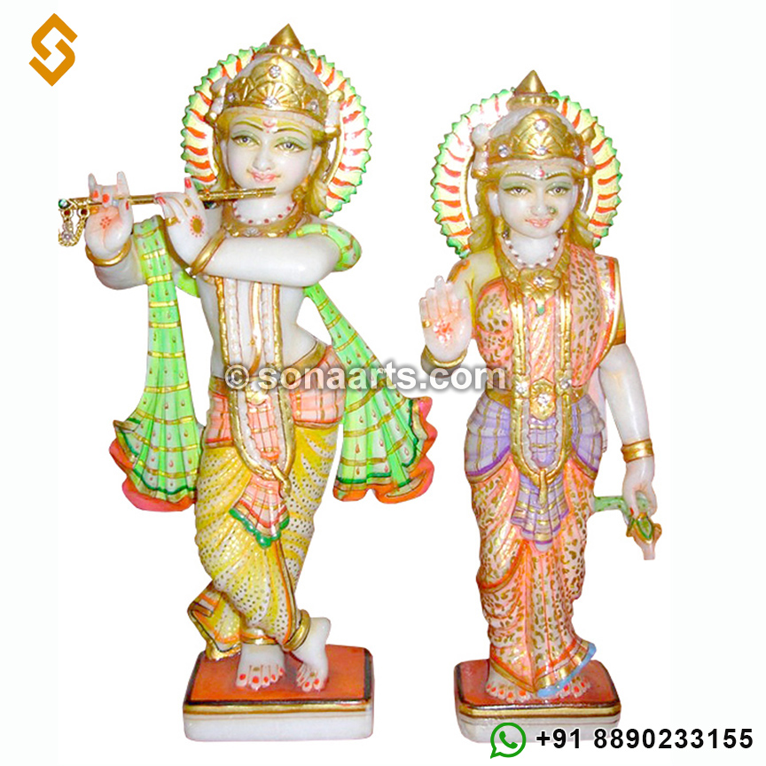 Radha Krishna statue inspires many devotees through its elegance and shine. These statue made from high quality marble and are painted in attractive designs. This Radha Krishna statue a perfect example of our mastery in marble statues.