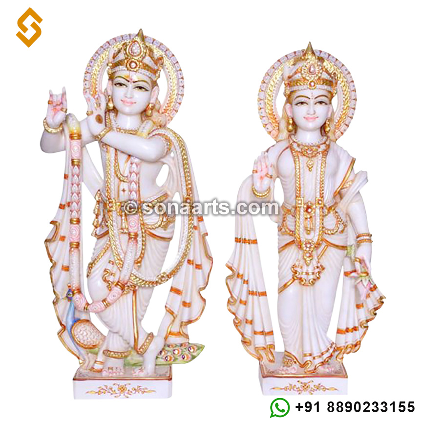 Masterpiece Iskcon Lord Radha krishna for temple. Made using high quality marble, this statue tuewhen finished and polished reflects an unparalleled shine.