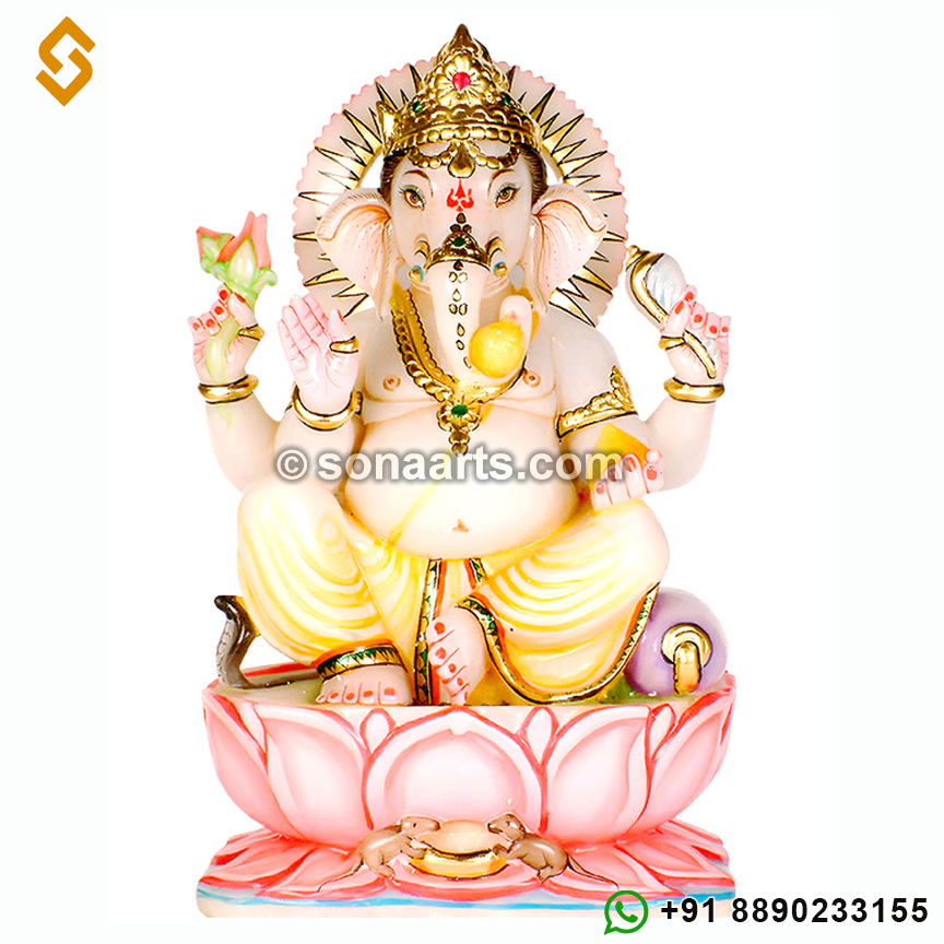 This marble made Ganesh statue is painted with attractive colors thus enhancing every feature of the idol. This statue made from high quality marble and are painted in attractive designs.