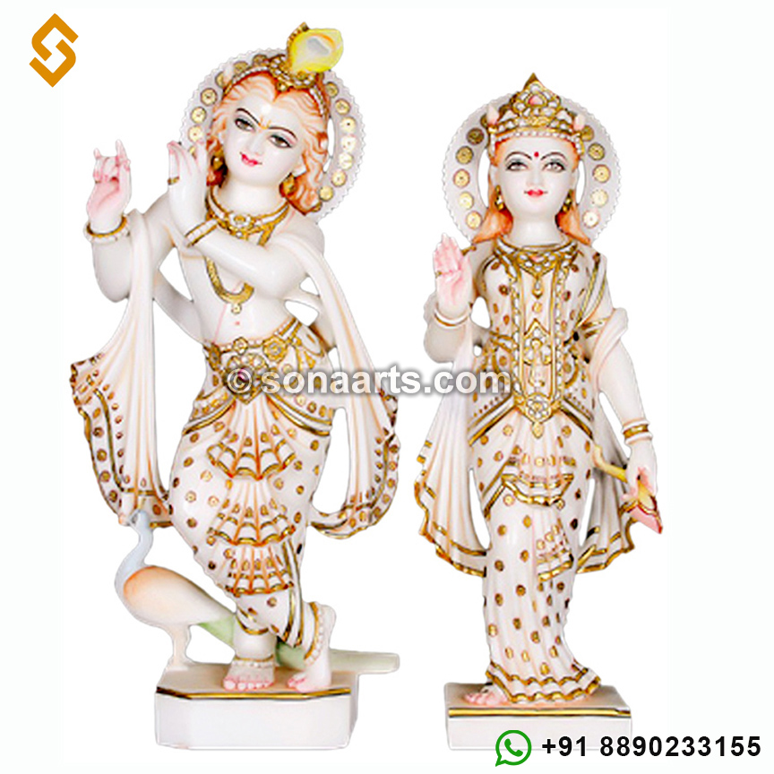Our Radha Krishna statue inspires many devotees through its elegance and shine. These statue made from high quality marble and are painted in attractive designs. This Radha Krishna statue a perfect example of our mastery in marble statues.