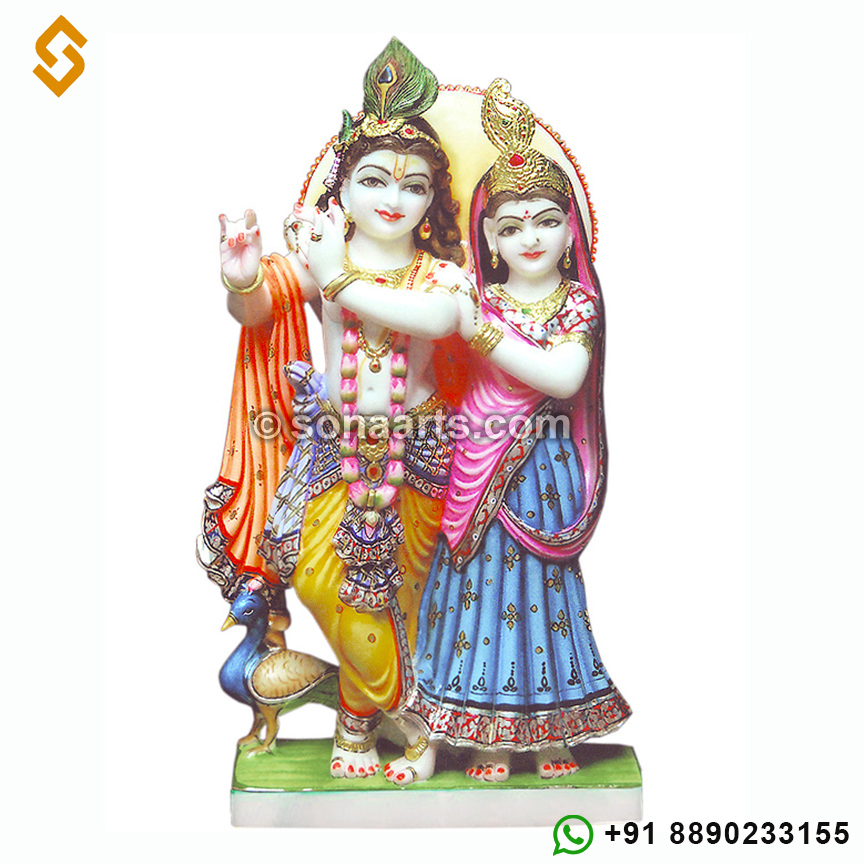 our Radha Krishna statue inspires many devotees through its elegance and shine. These statue made from high quality marble and are painted in attractive designs. This Radha Krishna statue a perfect example of our mastery in marble statues.