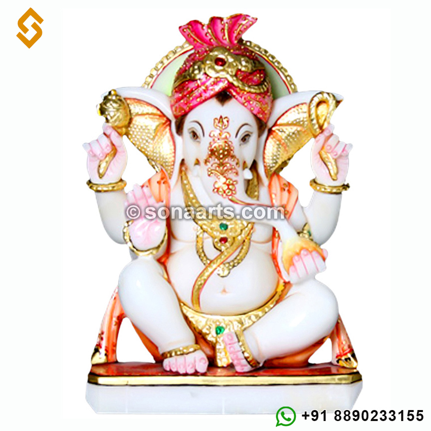 The marble Ganesh sitting with Riddhi Siddhi is designed to perfection and provides a stunning view. The statue is a symbol of fortune, happiness, peace and prosperity in many Indian homes.