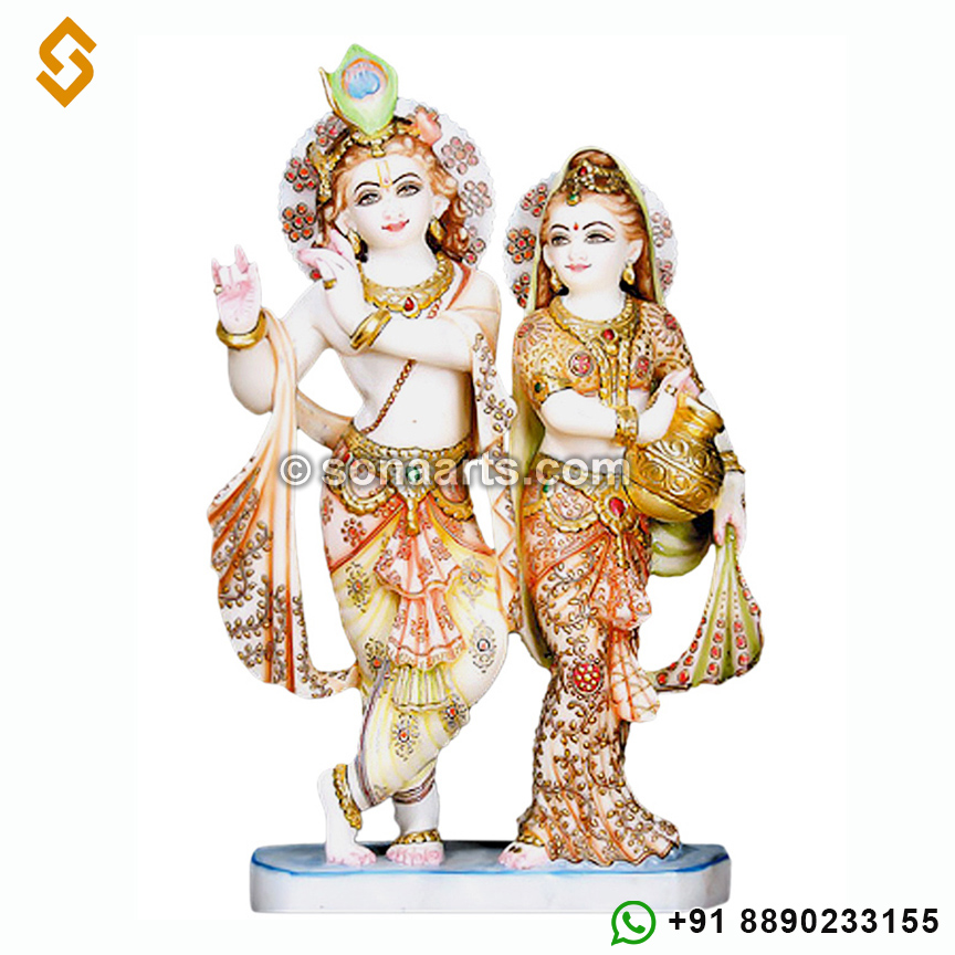Supper fine premium quality Marble Lord Krishna - Radha Murti. The jewelery and other accessories are highlighted through gold colored painting on them. This Radha krishna Murti a perfect example of our mastery in marble statues.